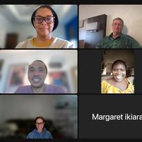 From left to right: Screenshots from a quarterly Board meeting, Tanya and Board President Kathleen with the African Advisory Board visiting SIA Partner Transformers in Kenya.